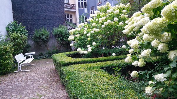 Am Ende meines Rundganges gehe ich zurück ins Erdgeschoss, und nach einem kurzen Abstecher bei den Märchen und Sagen gehe ich raus in den Lesegarten. Hier duften die Blumen nach Honig und auf einer Bank kann ich den Sommer genießen und meinen Tragekorb durchschauen. Was habe ich alles angesammelt? Das Rezeptbuch darf nach kurzem Durchblättern hierbleiben, aber zwei Romane, jeweils auf Deutsch und Englisch, eine Märchensammlung, eine Ausgabe der Zeitschrift GEO, eine Musik-CD und eine DVD, kommen mit.