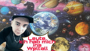 Auf dem Bild steht: Leute, ich hab mich ins Weltall geschrumpft.
